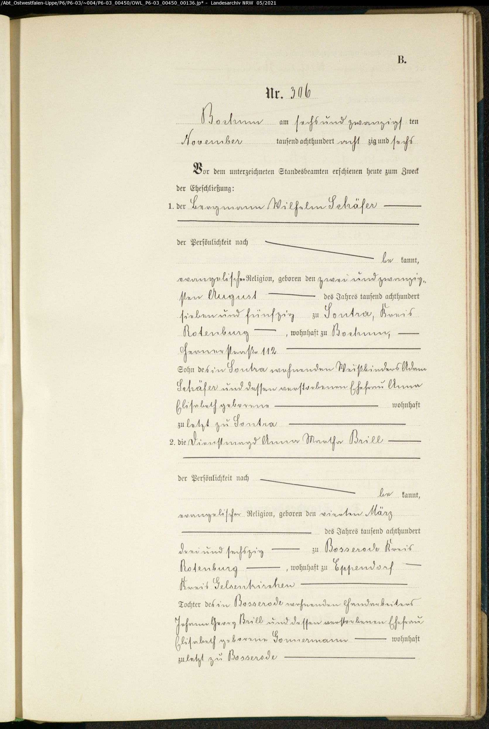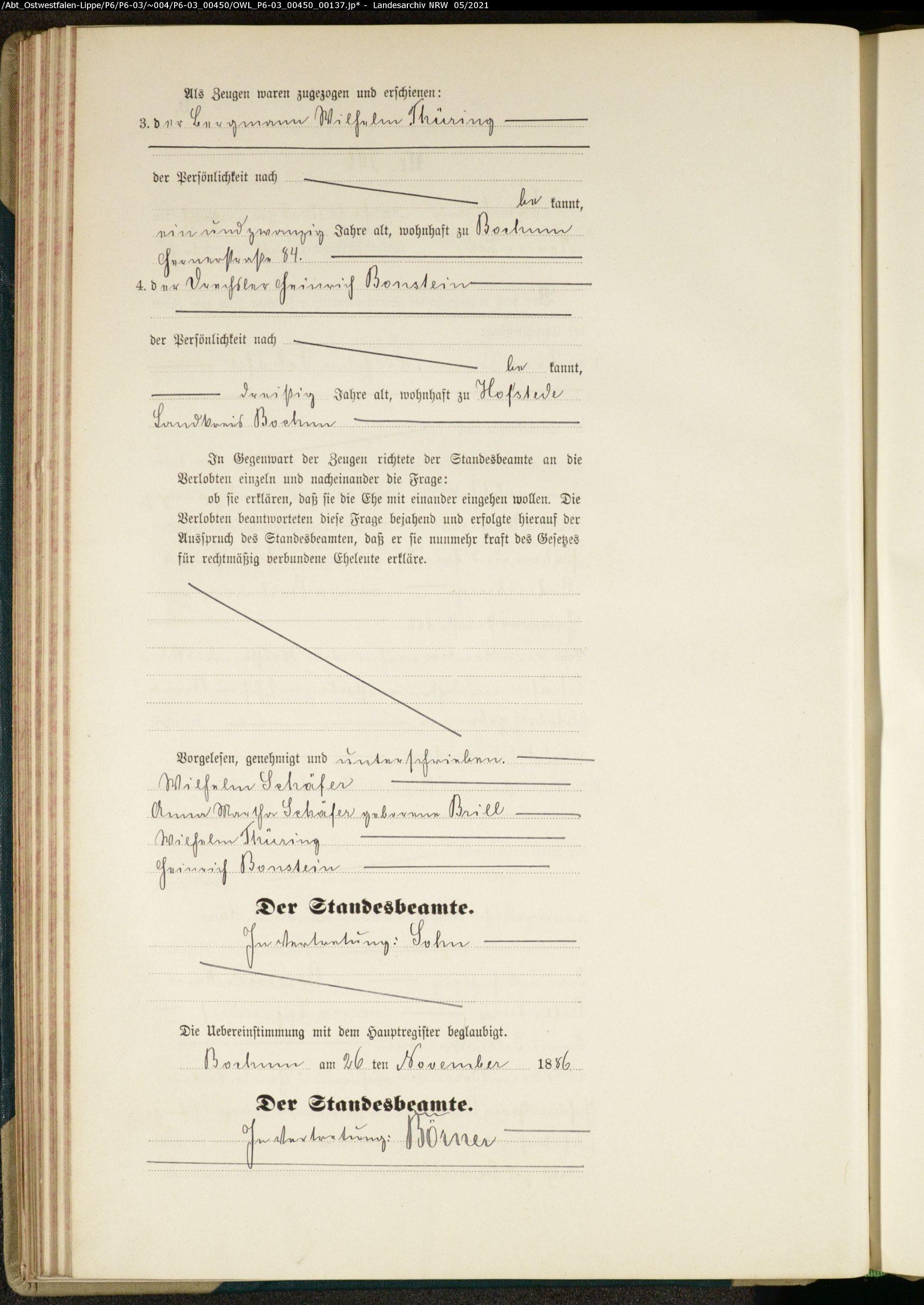 Marriage: 26.11.1886 in "Bochum-Mitte" (civil registration 306/1886 Bochum-Mitte)